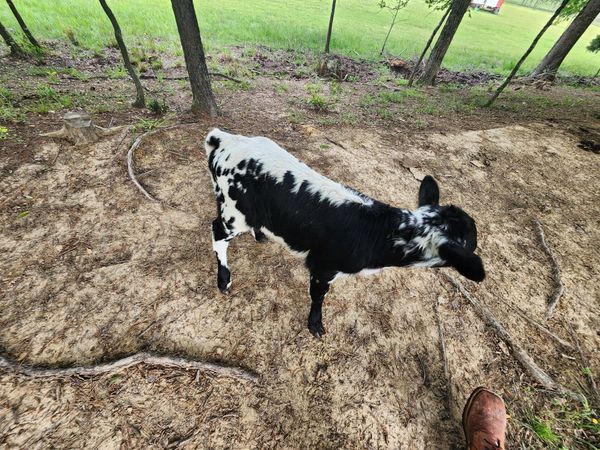 Gus is a 3 year old, double waddled and proven registered boar. He's gentle and friendly, likes his scratches as much as eating. Every piglet out of every litter he has thrown is double waddled. He's thrown blonde, red, tri-color, black and white, brown and black, blonde and black... just about everything. $250