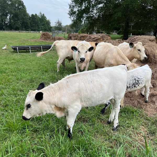 British White cattle are naturally polled, docile and was a dual purpose breed (beef and milk) until 1950. Since then the British Whites selection has been for beef production with carry over heavy milk production.